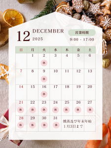 21日(日)から1月9日までは燻蒸及び年末年始、館内電気工事休館となります。