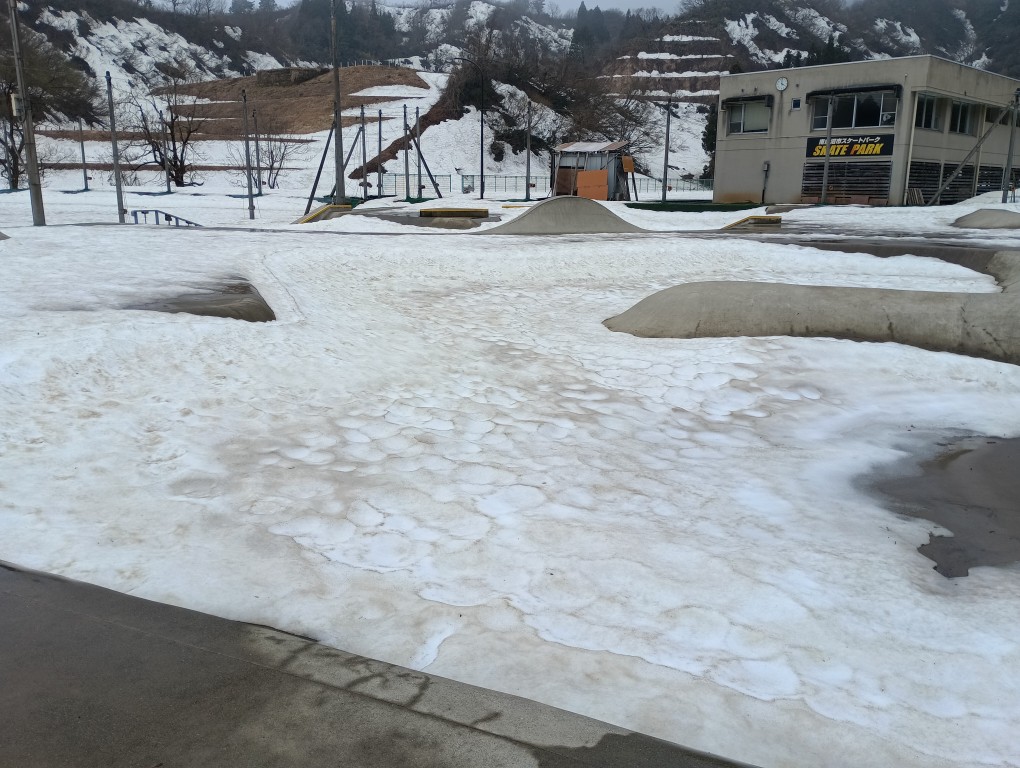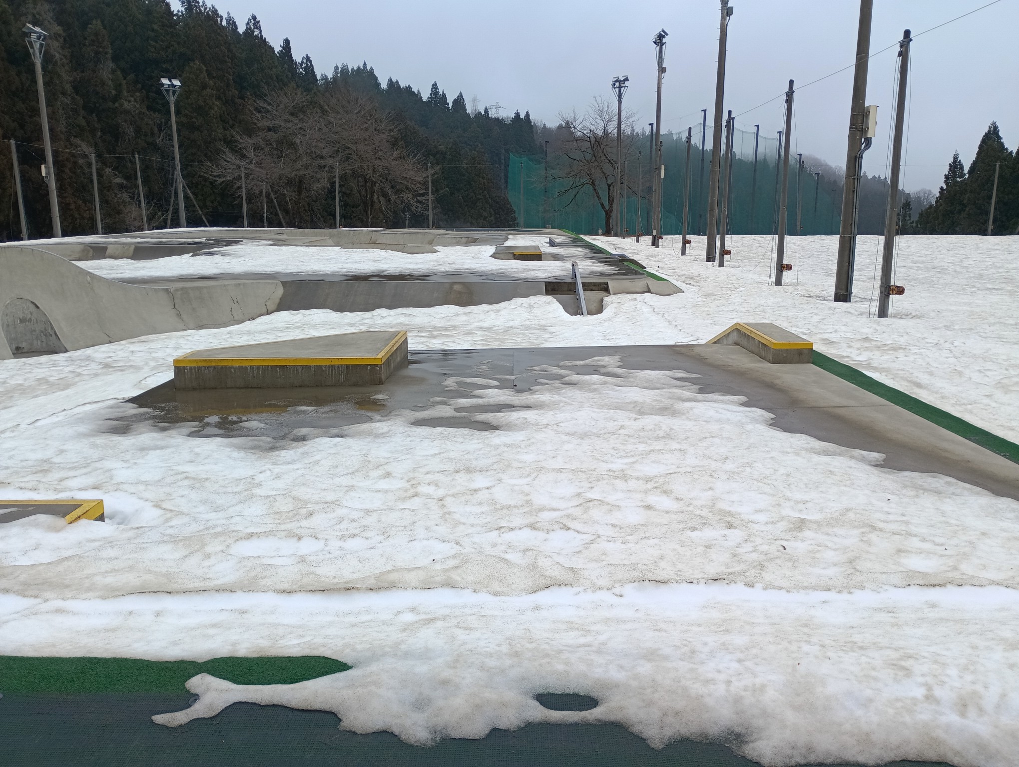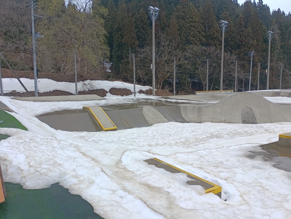 南魚沼市スケートパーク残雪状況をお知らせします!南魚沼市内では、雪消えが進んでいますが、まだまだありますね。4月下旬オープン予定です。